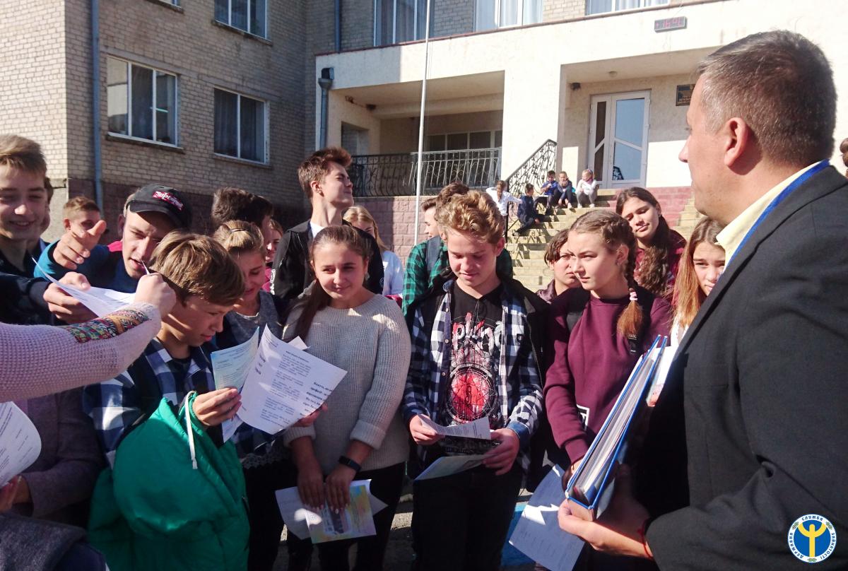 Родзинкою виїзної акції став відкритий урок для учнів старших класів, проведений фахівцем центру зайнятості спільно із соціальними партнерами - представниками Первомайського політехнічного інституту та Первомайського коледжу Національного університету кораблебудування імені адмірала Макарова - Оксаною Качуровською та Валентиною Кац, на тему: «СОЦІОМІКС: Обери професію. Навчайся. Працюй в Мигіївській ОТГ!».