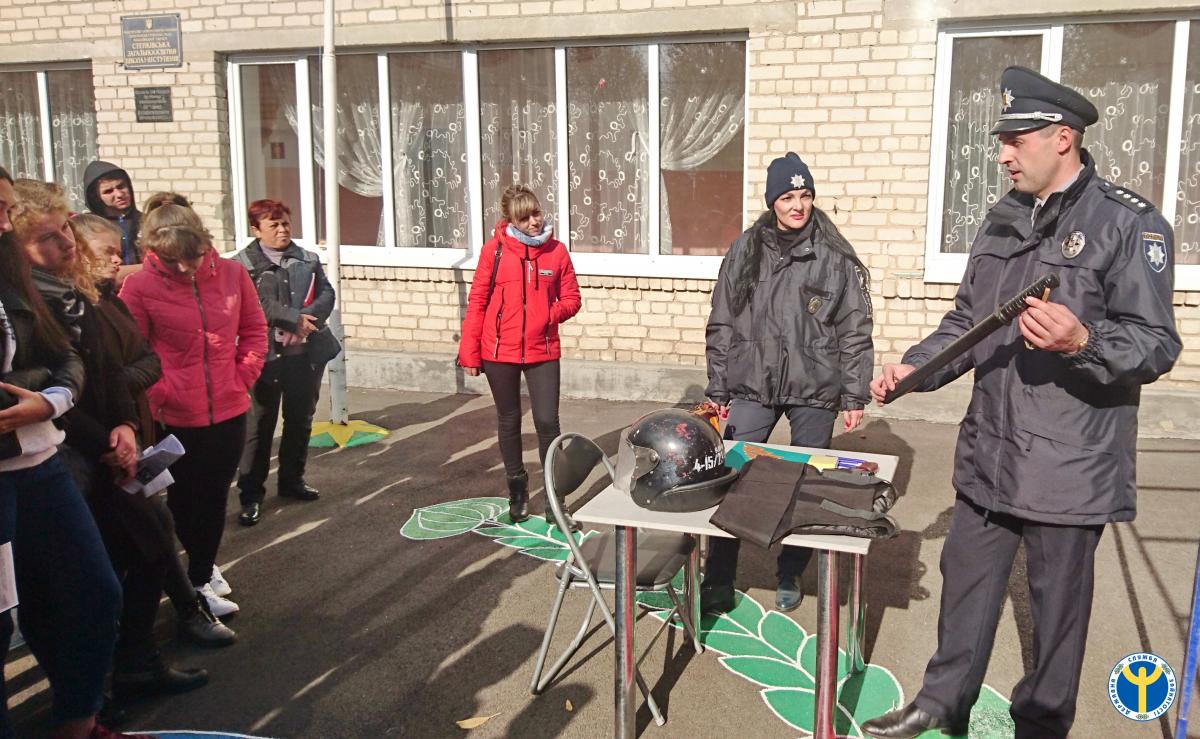Старший інспектор сектору кадрового забезпечення Вадим Зіновкін ознайомив учнів школи з можливостями та умовами вступу на службу в Первомайський відділі поліції ГУМП, а також розповів присутнім про особливості вступу до навчальних закладів системи Міністерства Внутрішніх Справ та закликав школярів вступати до відповідних навчальних закладів.
