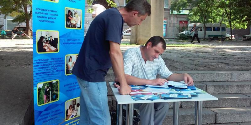 07 серпня фахівці Заводського районного центру зайнятості м.Миколаєва провели виїзну інформаційну акцію з використанням мобільного центру зайнятості в сквері «Привокзальний»