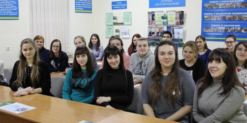 Студенти І курсу Миколаївської філії Київського національного університету культури і мистецтв, які опановують інформаційну, бібліотечну та архівну справу, в рамках ознайомчої практики з установами та організаціями відвідали службу зайнятості.