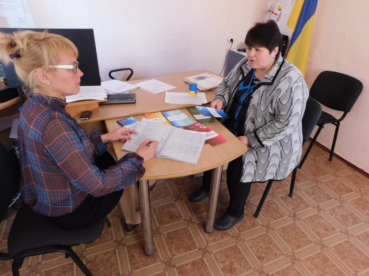 здійснювала прийом громадян в її приміщенні. Були надані консультації відвідувачам щодо порядку реєстрації громадян в центрі зайнятості, переліку необхідних документів, здійснювала послуги з пошуку та підбору роботи, розповідала про можливості проходження навчання за направленням служби зайнятості та отримання одноразової виплати для організації підприємницької діяльності. Активно цікавились мешканці села можливістю реєстрації через такий сервіс служби зайнятості, як електронна черга. За результатом проведеної роботи шість осіб отримали пропозицію з інформацією про вакансії та можливість