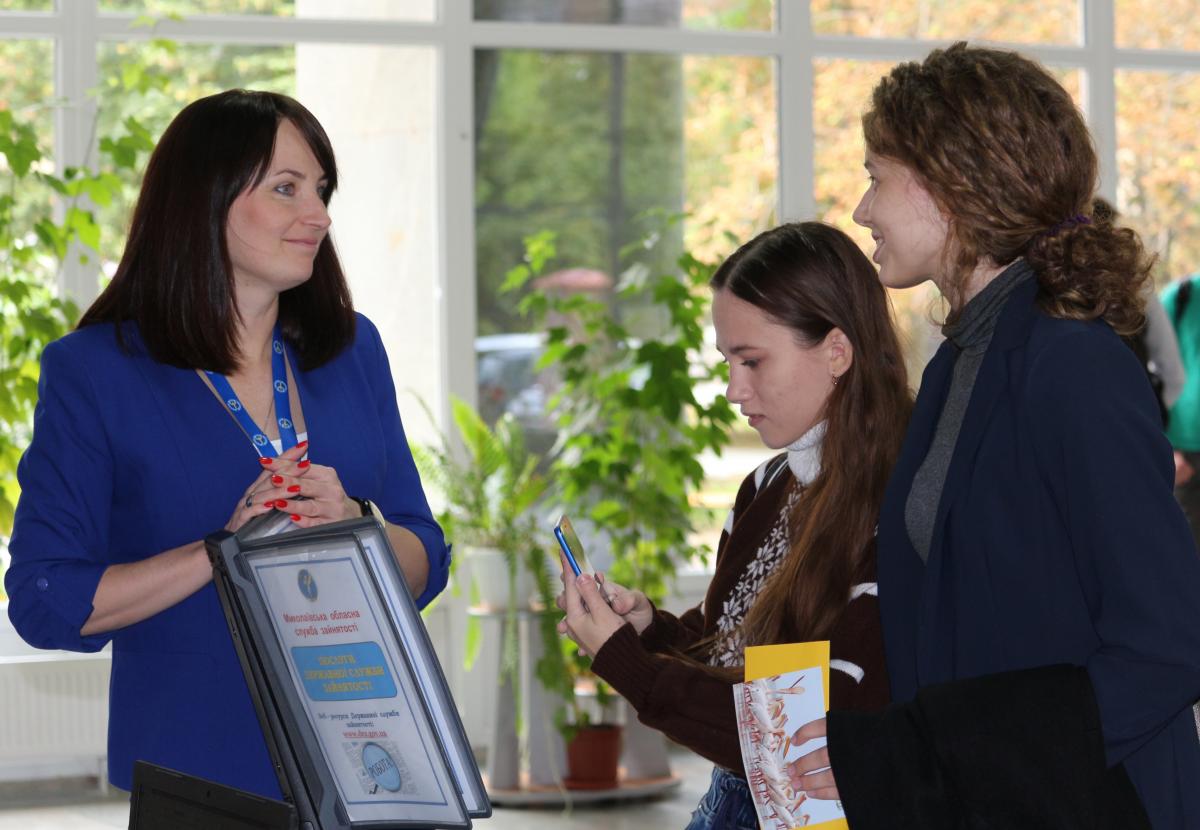 Для молоді були презентовані сучасні онлайн проєкти Миколаївського обласного центру зайнятості: «Інтерактивна карта вакансій», віртуальний клуб «ПСИХОЛОГ і Я», електронні каталоги «Кластер професій» та « Профес і Я».