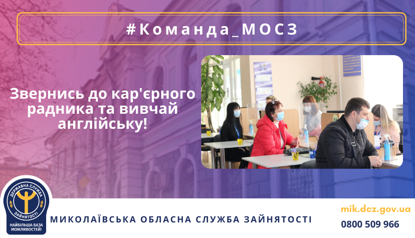 Якщо у вас з’явилось бажання підвищити свою конкурентну спроможність серед інших претендентів в пошуках гідної роботи, скористайтесь можливістю безкоштовного вивчення англійської мови за сприяння служби зайнятості. Це можна зробити за допомогою онлайн-платформи «Lingva.Skills» - зверніться до свого кар’єрного радника і отримайте доступ до інноваційної та ефективної системи вивчення англійської мови!