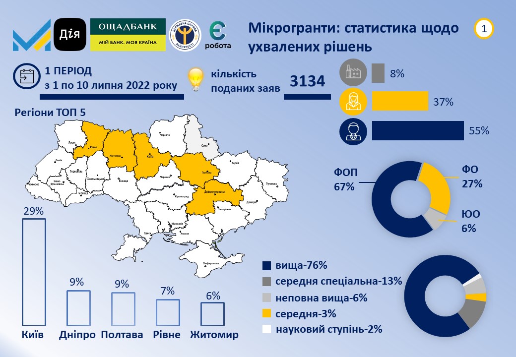 Мікрогранти: статистика щодо ухвалених рішень І період (1 - 10 липня 2022 року).