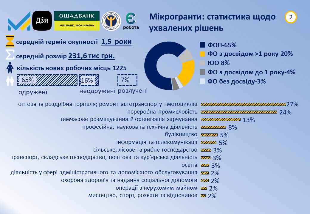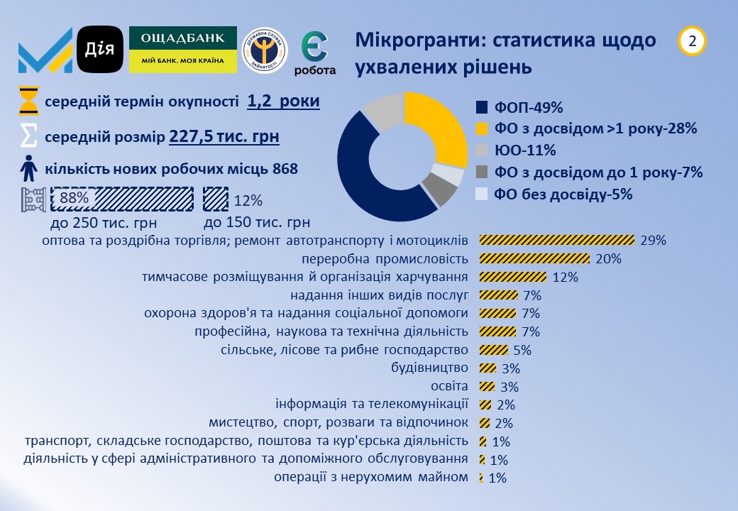 В програмі мікрогрантів на створення або розвиток власного бізнесу всього за 2 періоди вже 748 підприємців отримали позитивне рішення щодо одержання фінансування для розвитку чи започаткування своєї справи.