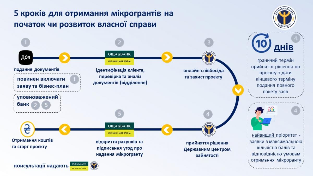 Дія, Ощадбанк та Державна служба зайнятості розпочали надання консультації клієнтам, які бажають взяти участь в програмі з метою запуску нового або розвитку діючого бізнесу зі створенням нових робочих місць.