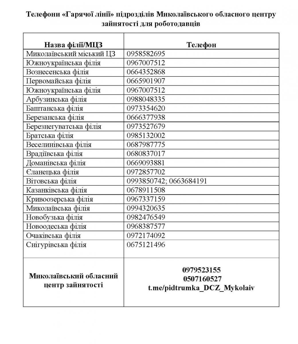 За детальною інформацією звертайтесь до фахівців служби зайнятості за контактами «гарячої» лінії Миколаївського ОЦЗ або пишіть в Телеграм підтримку .