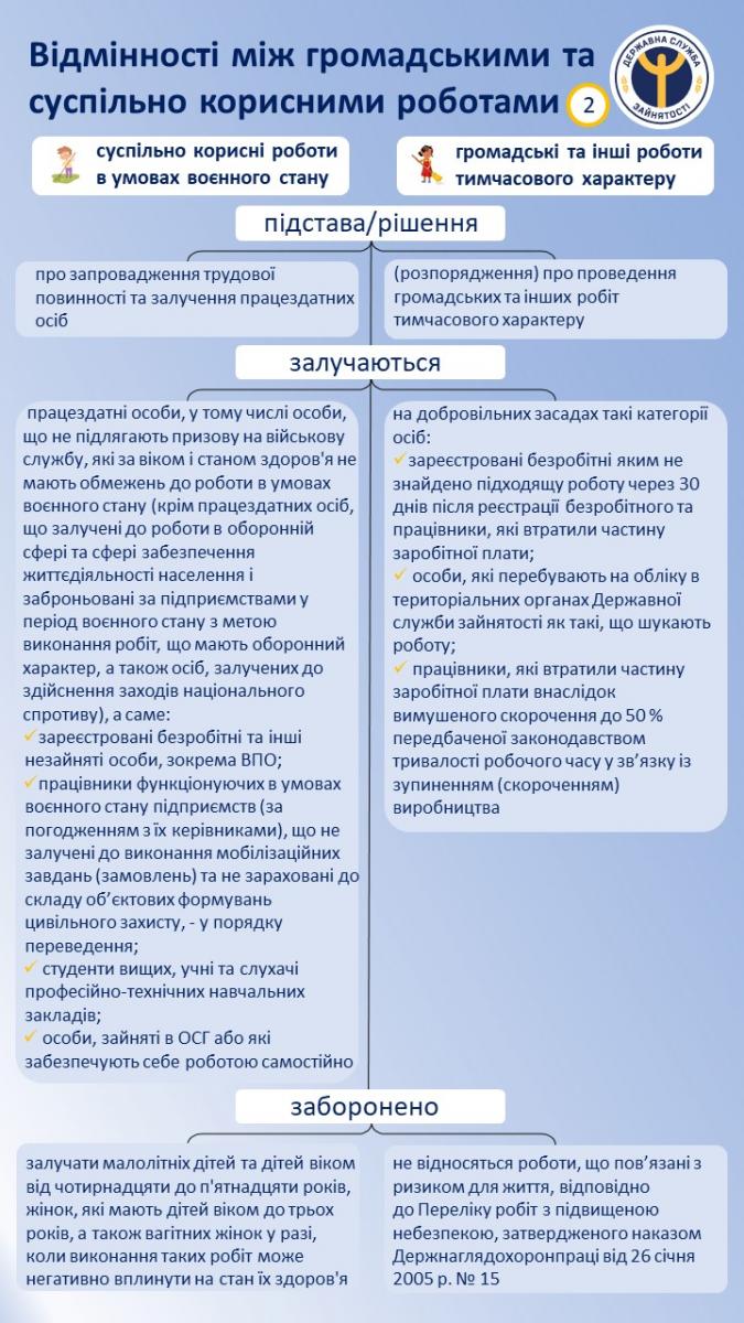 На підставі запровадження трудової повинності до суспільно корисних робіт залучаються зареєстровані безробітні та інші незайняті особи, зокрема внутрішньо переміщен,і а також працівники функціонуючих в умовах воєнного стану підприємств, за домовленістю з керівниками.