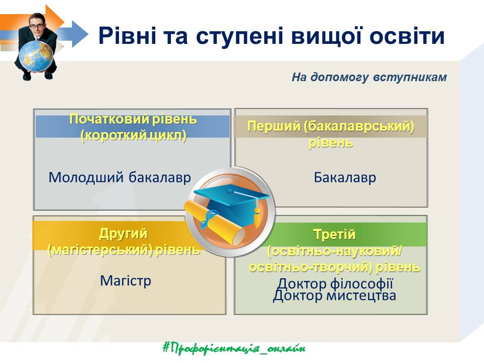 Якщо ж ви вирішили отримати вищу освіту, то в нагоді вам стане інформація щодо рівнів та ступенів вищої освіти.